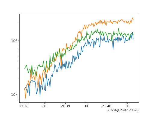 plt.xlim(datetime(2020, 6, 7, 21, 30), datetime(2020, 6, 7, 22, 0))